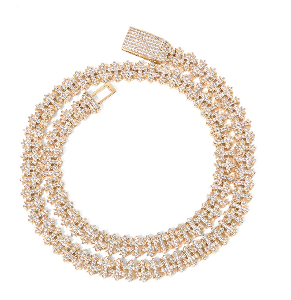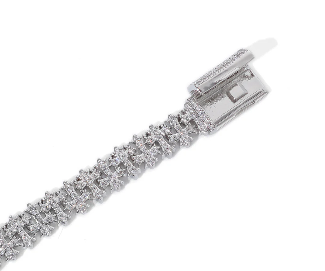 The Iced-Out Cross Chain blends bold street style with timeless symbolism. Featuring a sleek cross centerpiece flooded with hand-set stones, it shines with unmatched brilliance from every angle. Crafted for those who want their faith and fashion to stand out, this bracelet is a statement of power, presence, and individuality perfect for elevating any look.